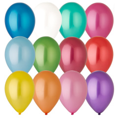 Шар из натурального латекса. Ассорти из 10-12 цветов (в случайном соотношении), одного типа - металлик - шар с металлическим блеском. Предназначенный для использования в оформлении и розничной продаже.